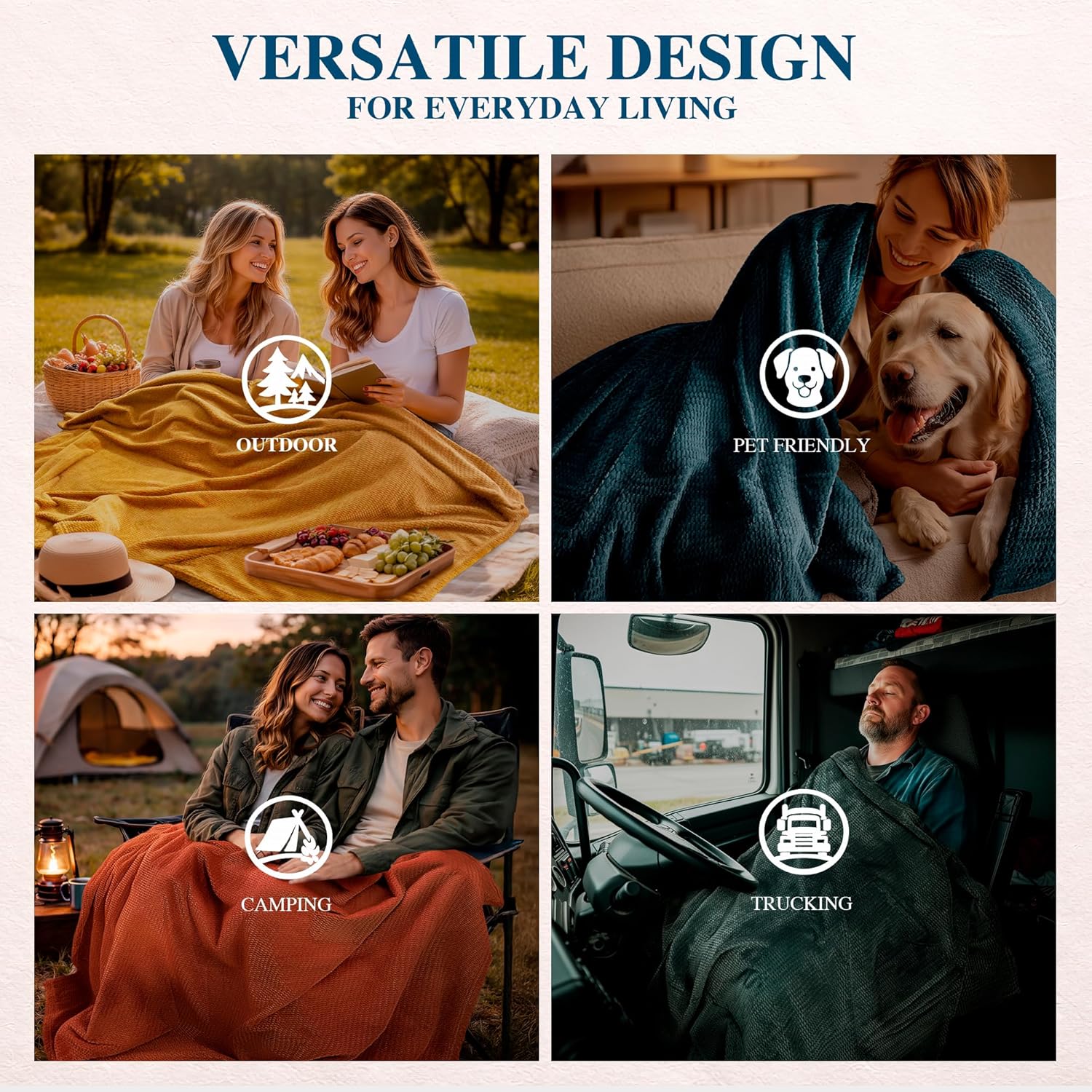 - Versatile Throw for Any Occasion: Use it as a couch throw blanket, bed blanket, travel blanket, camping blanket, picnic blanket, or car blanket for long drives.