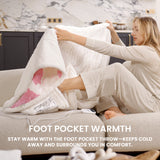 - Exquisite Foot Pocket Design for All-Day Comfort: Unlike ordinary electric throw blankets, our blanket features a thoughtfully designed foot pocket that keeps your feet cozy and warm, shielding you from the cold. Perfect for lounging, reading, or working from home, it provides all-around comfort and a snug, relaxing experience from head to toe.