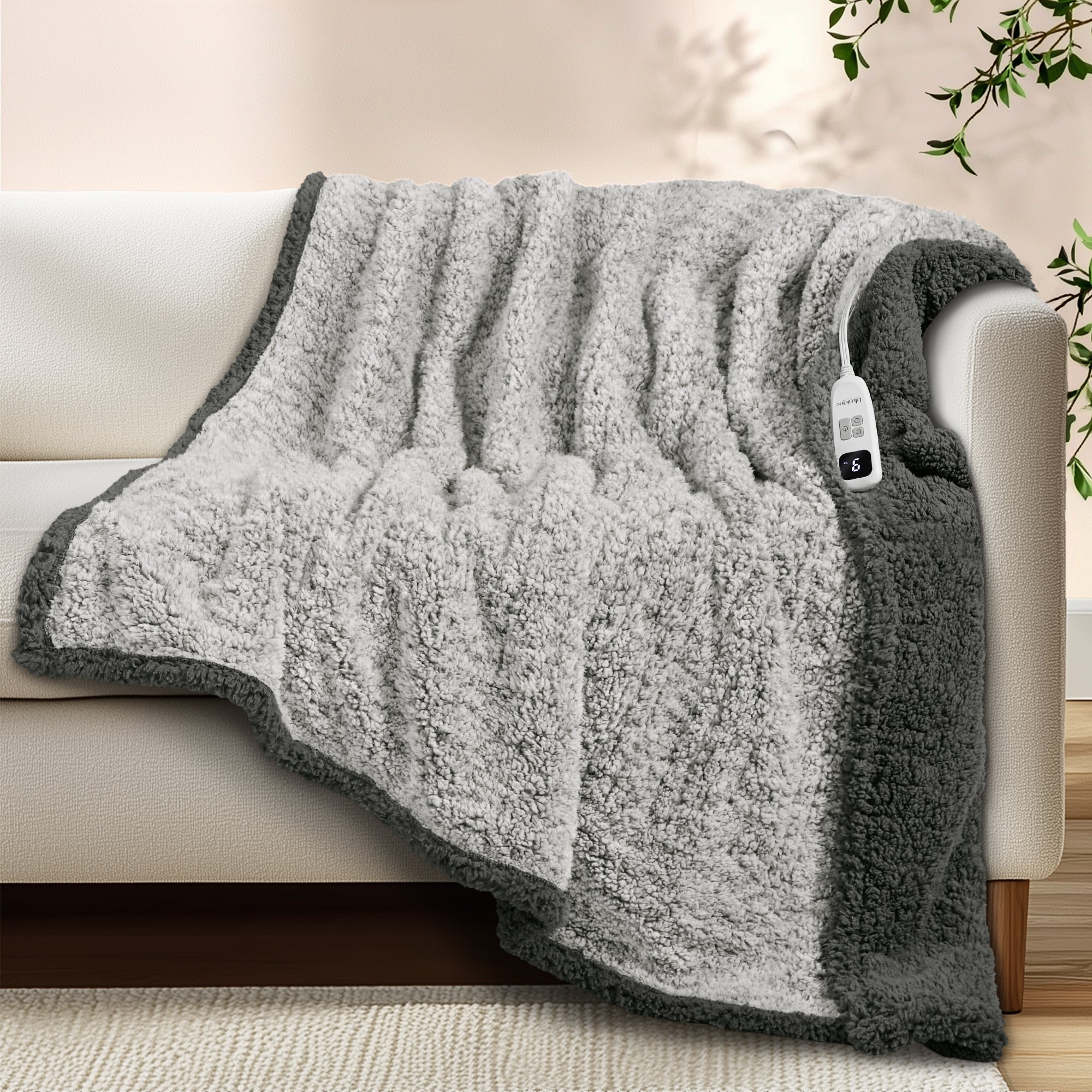 blunique - Double Sided Cozy Sherpa - Two-Tone -Fast Heated Blanket Electric Blanket