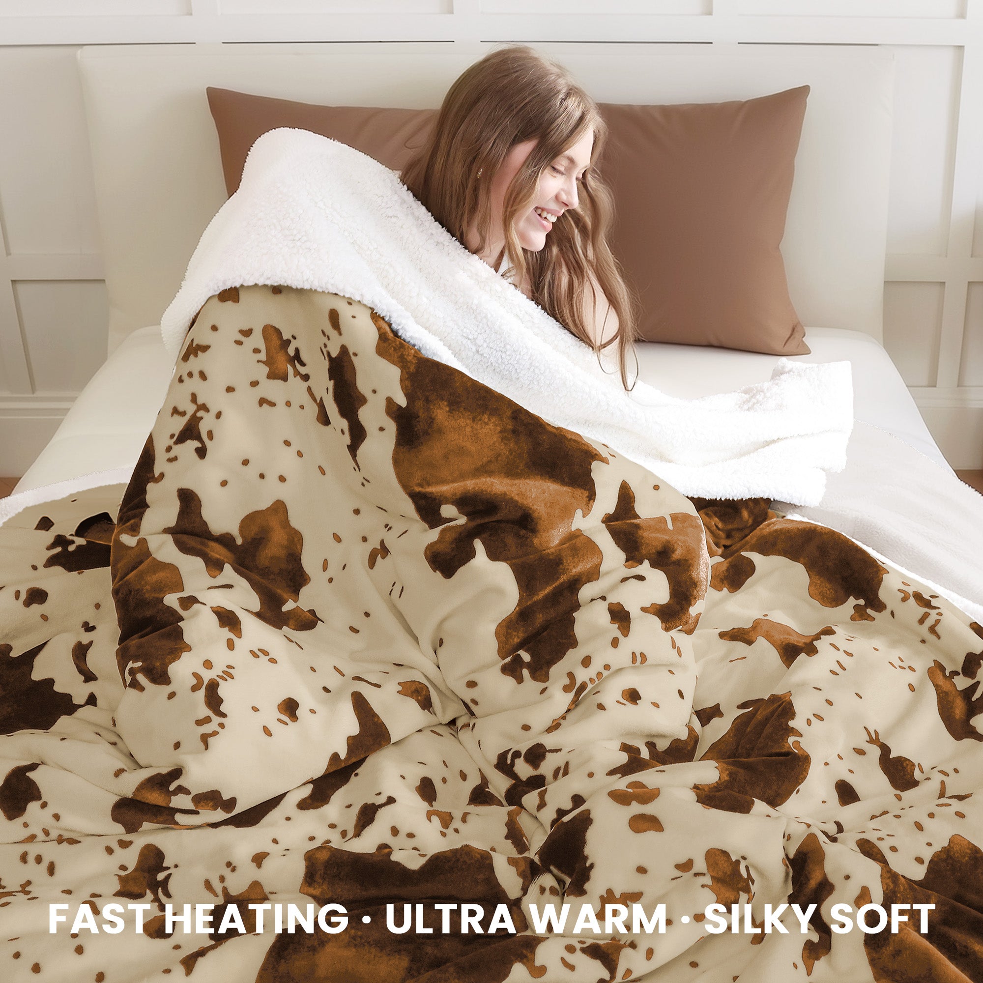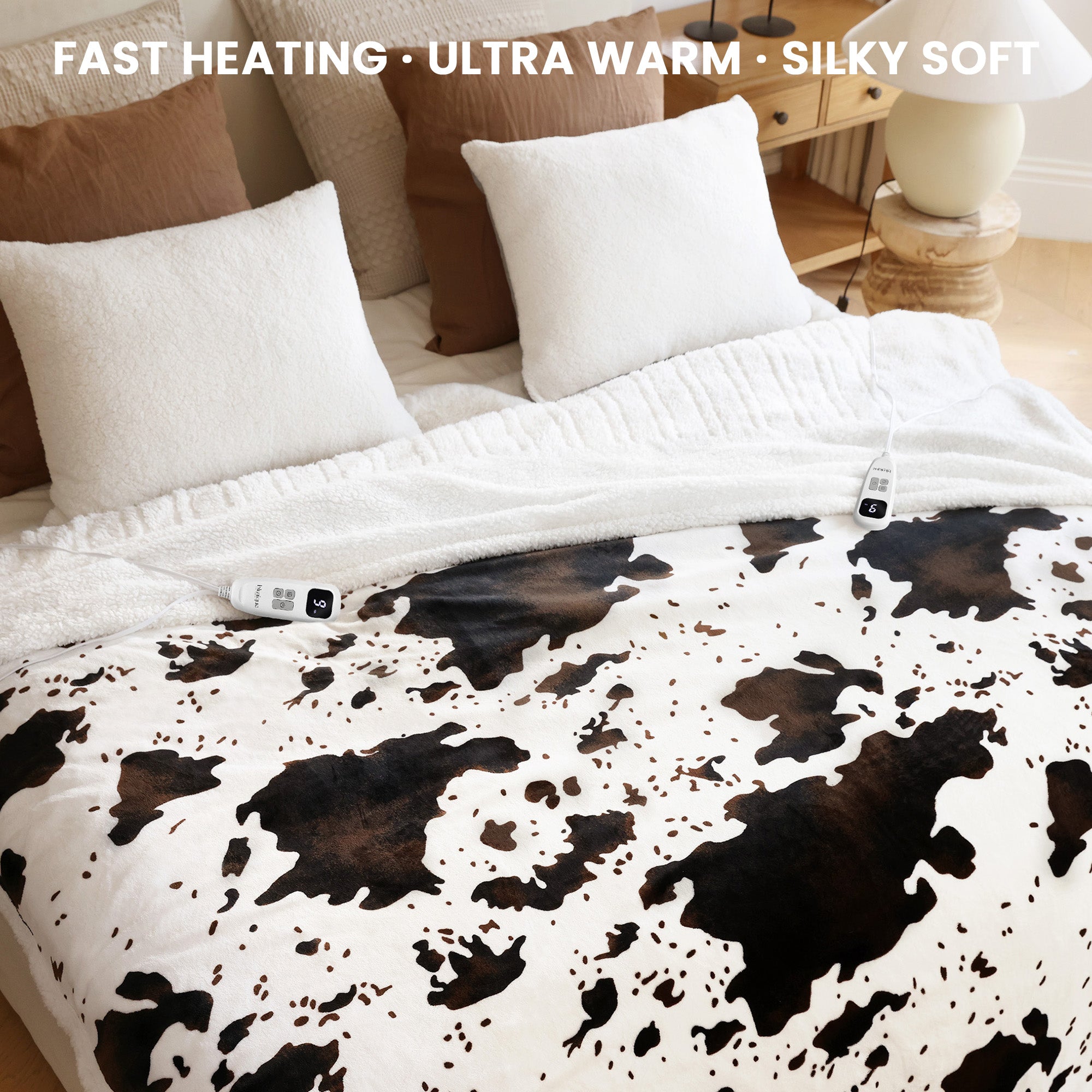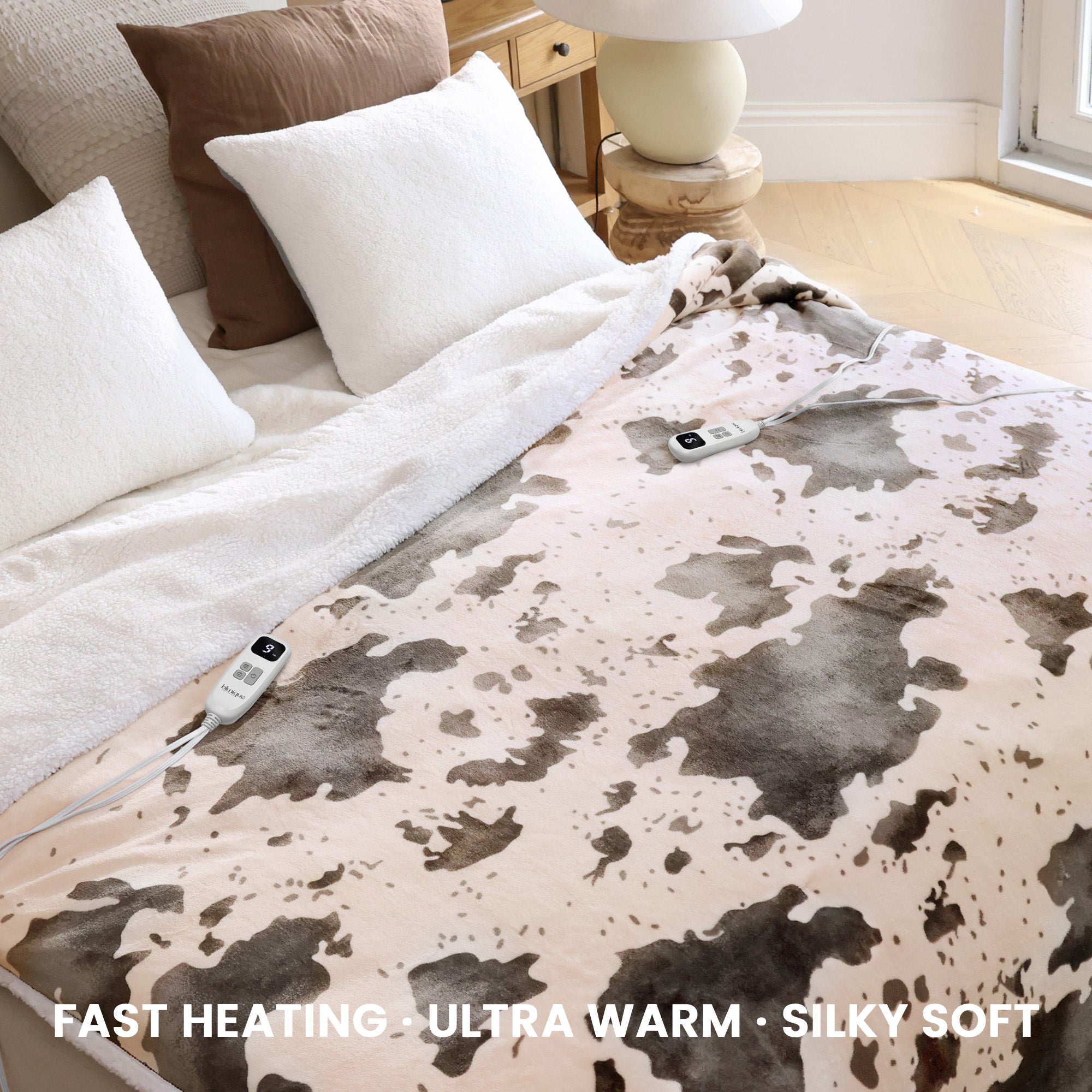 blunique - Cow Print Electric Heated Throw & Blanket