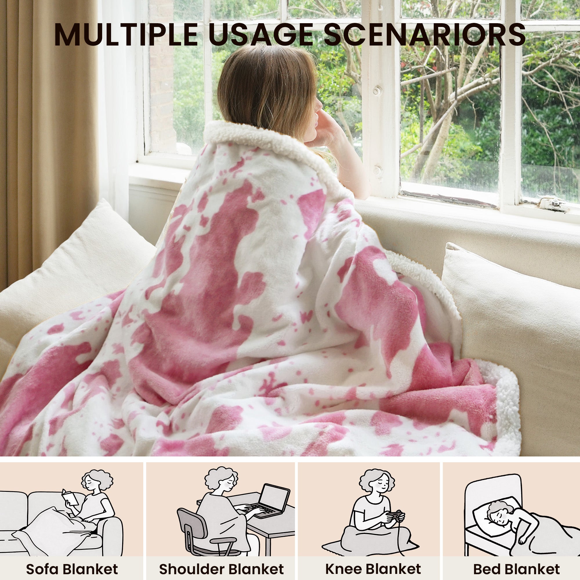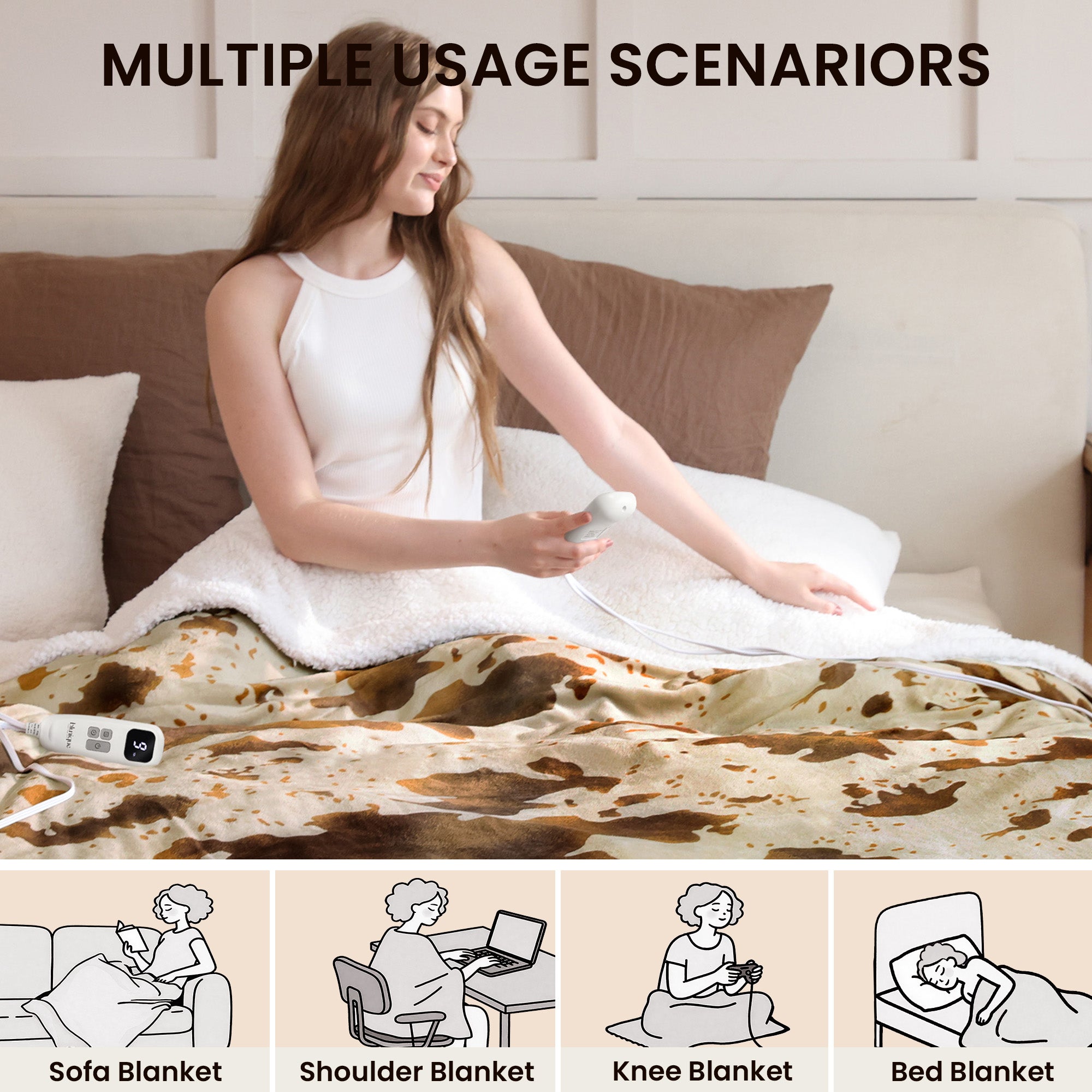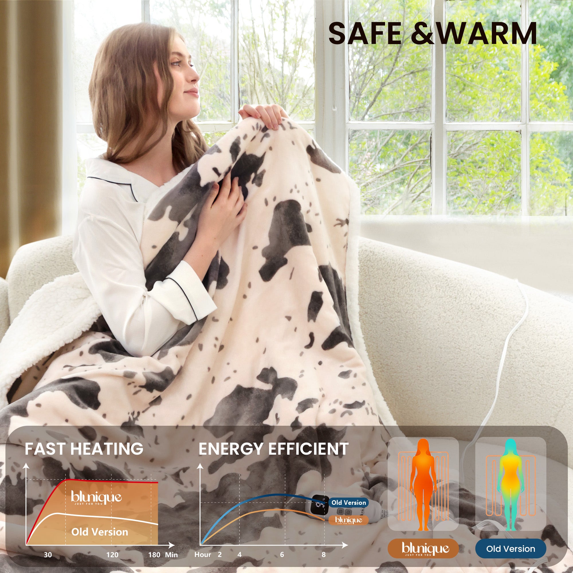 blunique - Cow Print Electric Heated Throw & Blanket