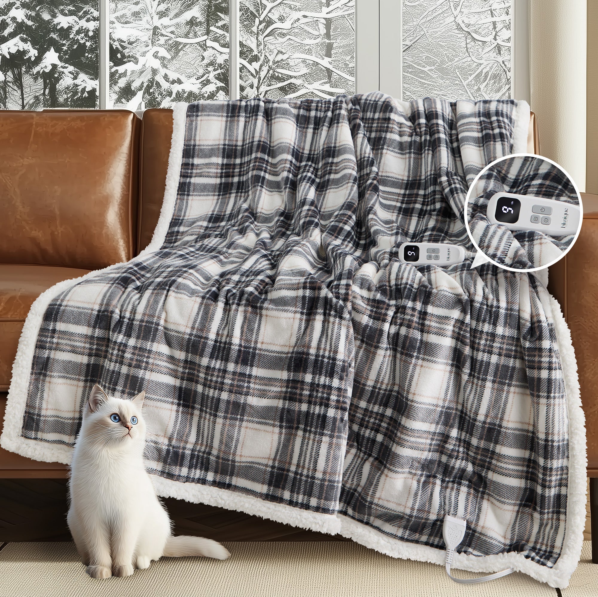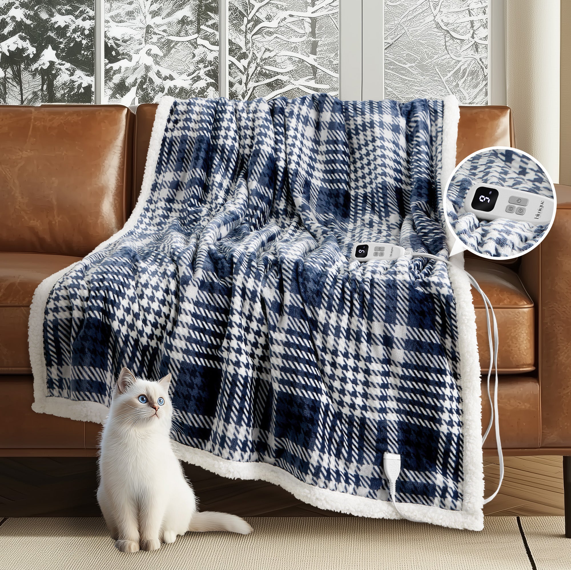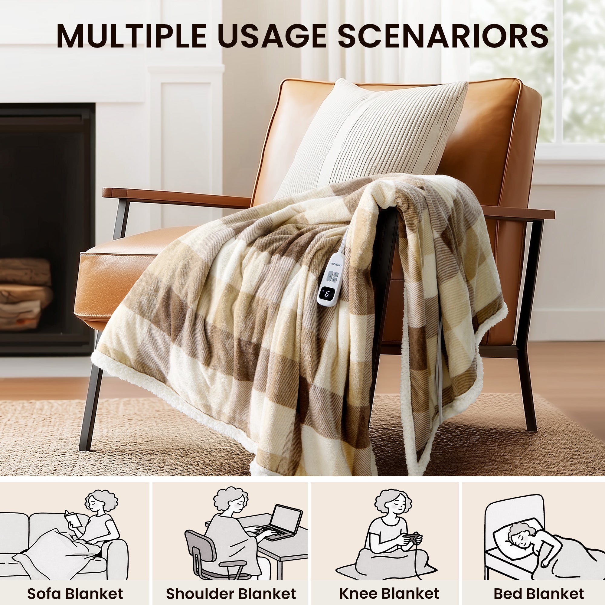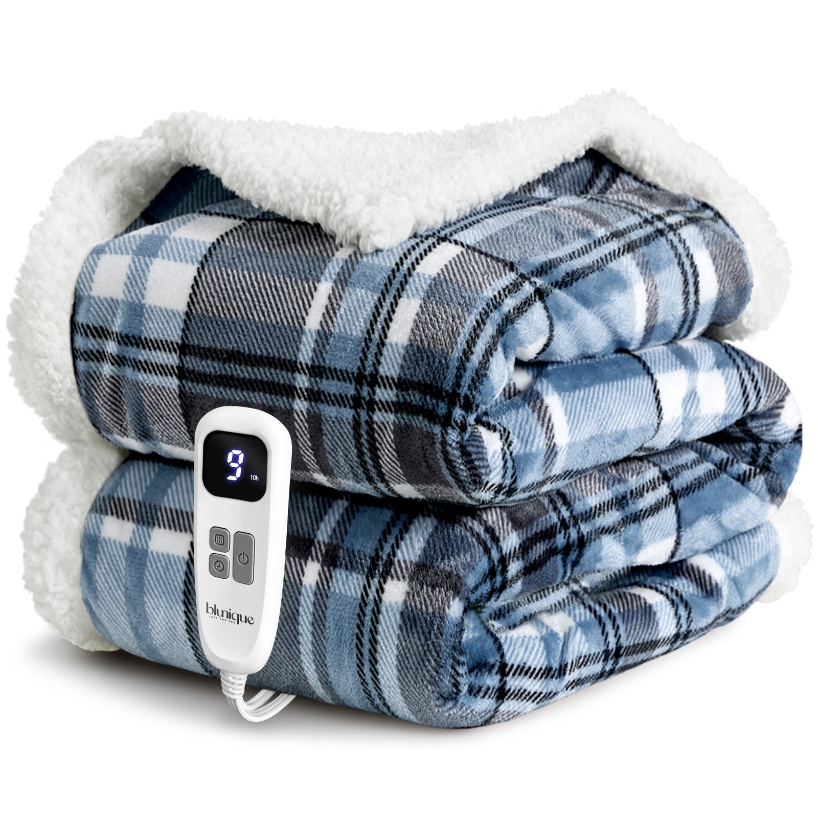 blunique - Ultra Soft Cozy Plaid Flannel - Fast Heated Blanket Electric Throw 50''x60''