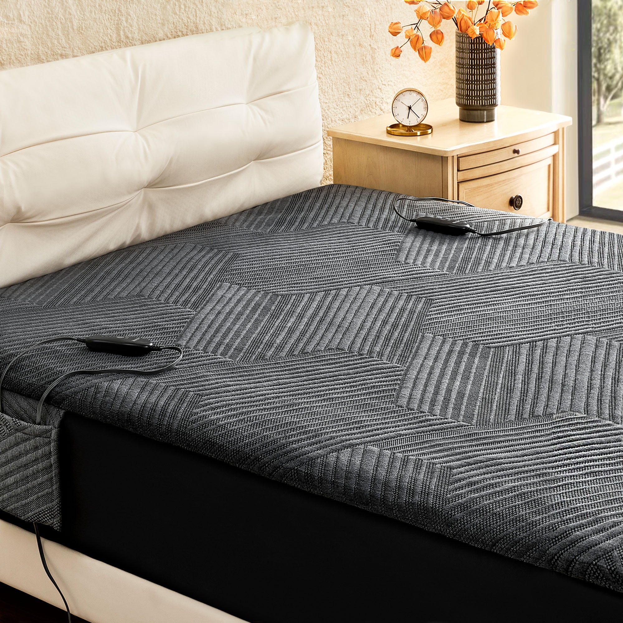 Added a side pocket on the mattress cover for the controller, with a single pocket on one side for twin and full sizes (single controller), and dual pockets on both sides for queen and king sizes (two controllers).