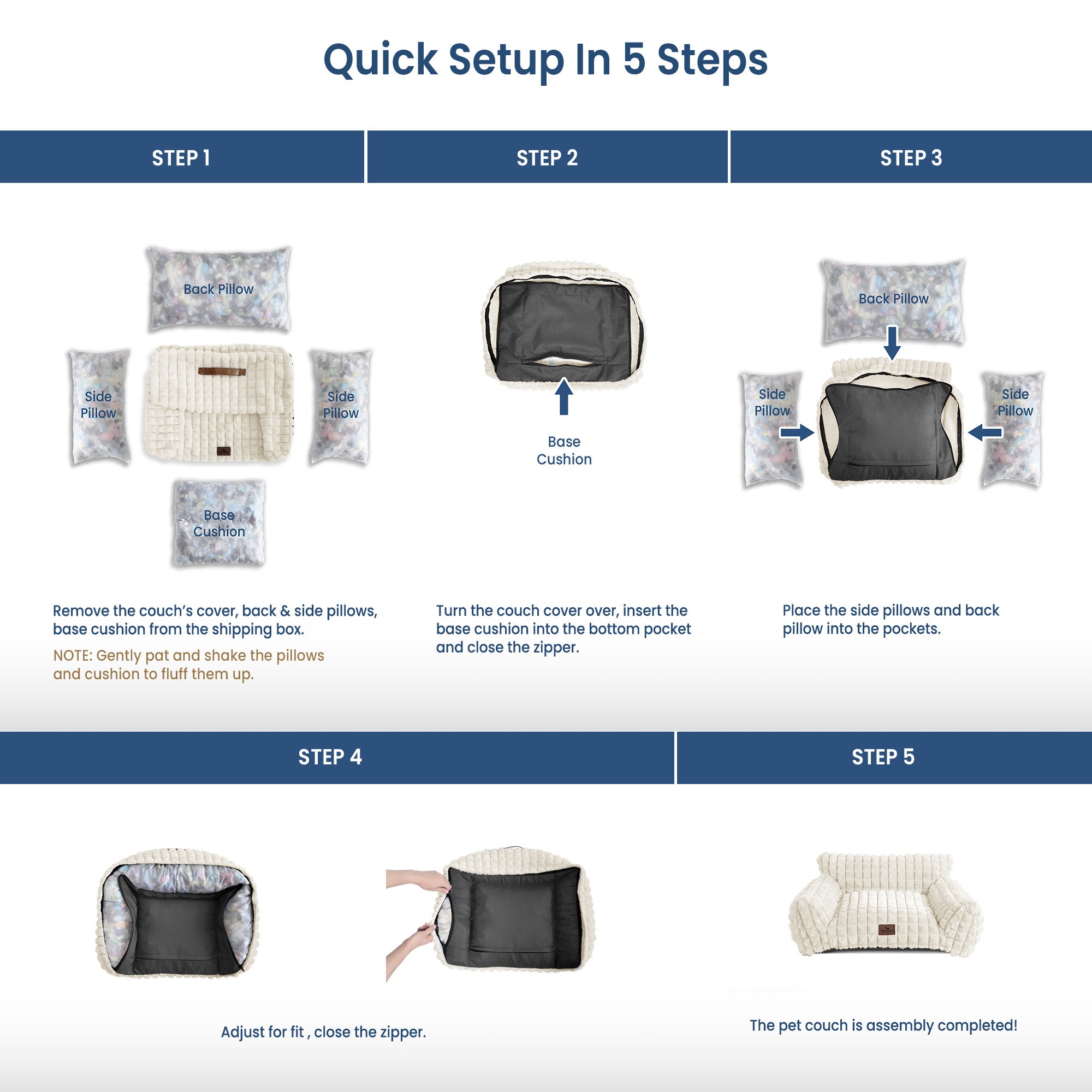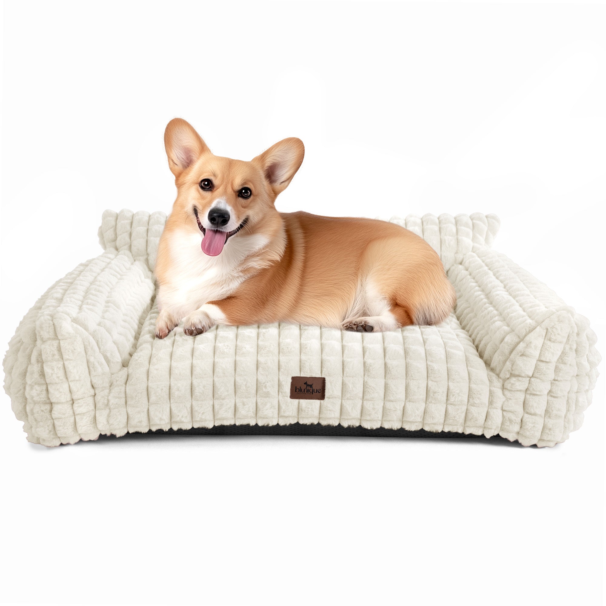 - Unique Diamond Pattern with Faux Rabbit Fur – The cute pet bed made with ultra-soft faux rabbit fur in a 3D diamond texture, this pet sofa not only feels incredibly cozy but also brings a stylish look to your home.